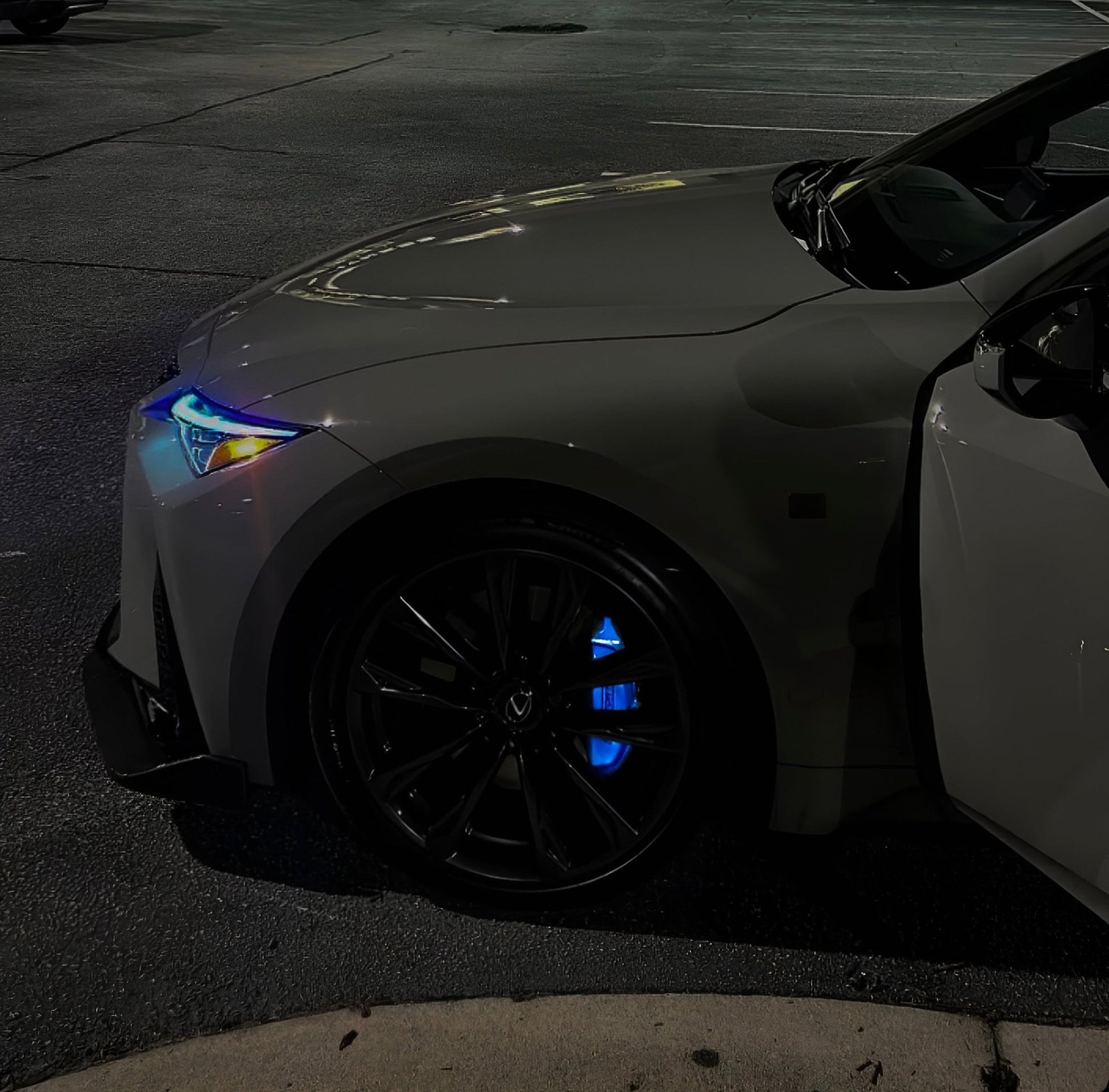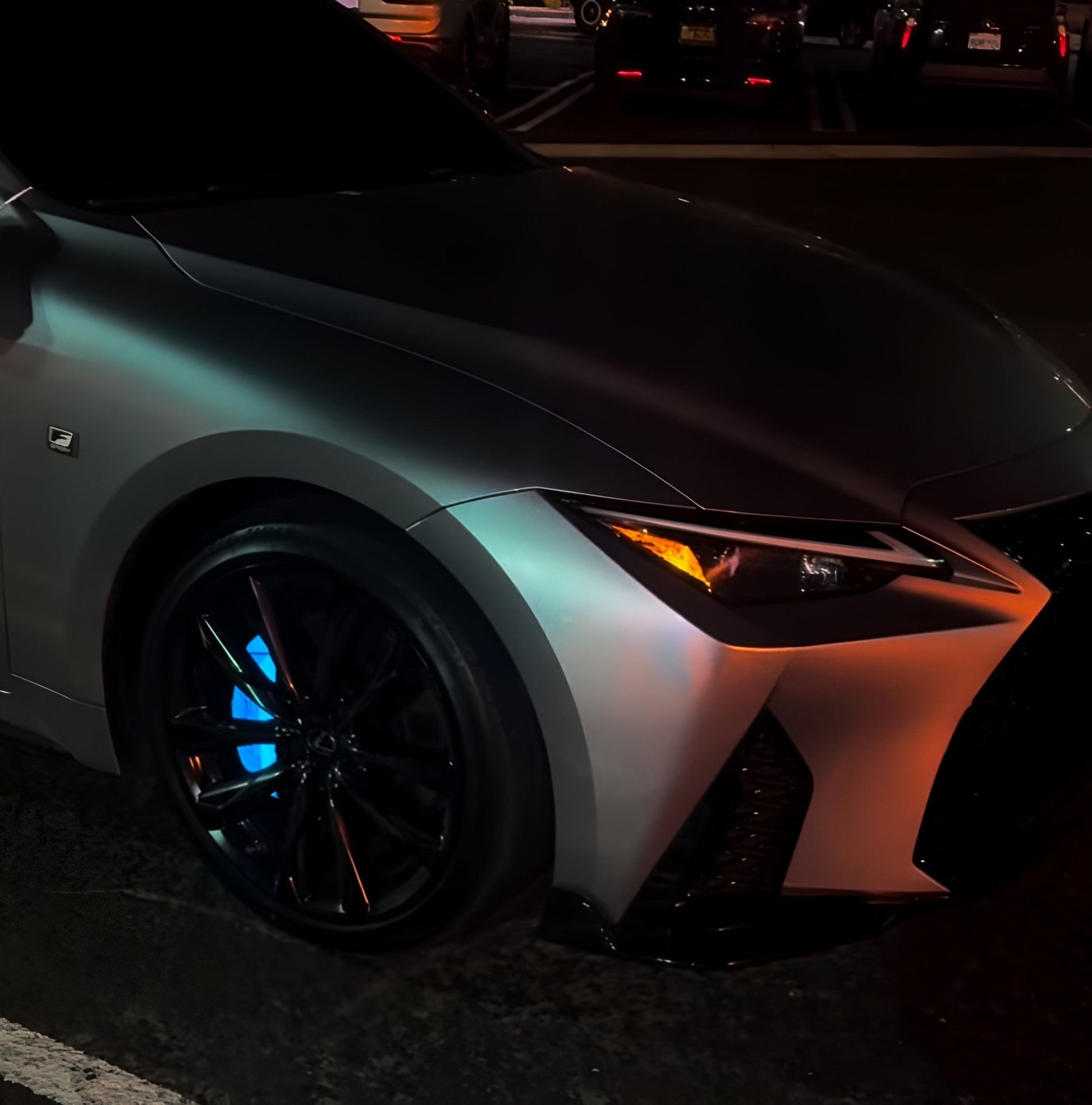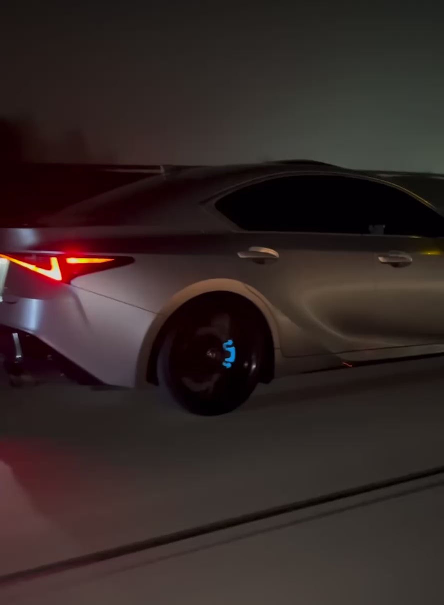 - Two gloss black F Sport / Lexus decals for the front calipers (rear calipers are too small for lettering)