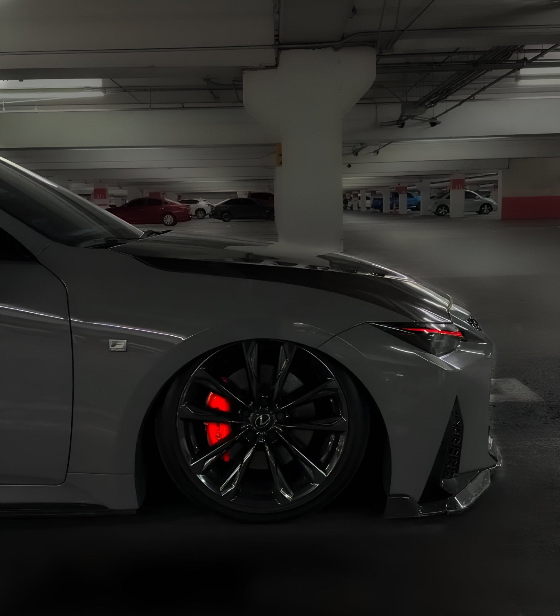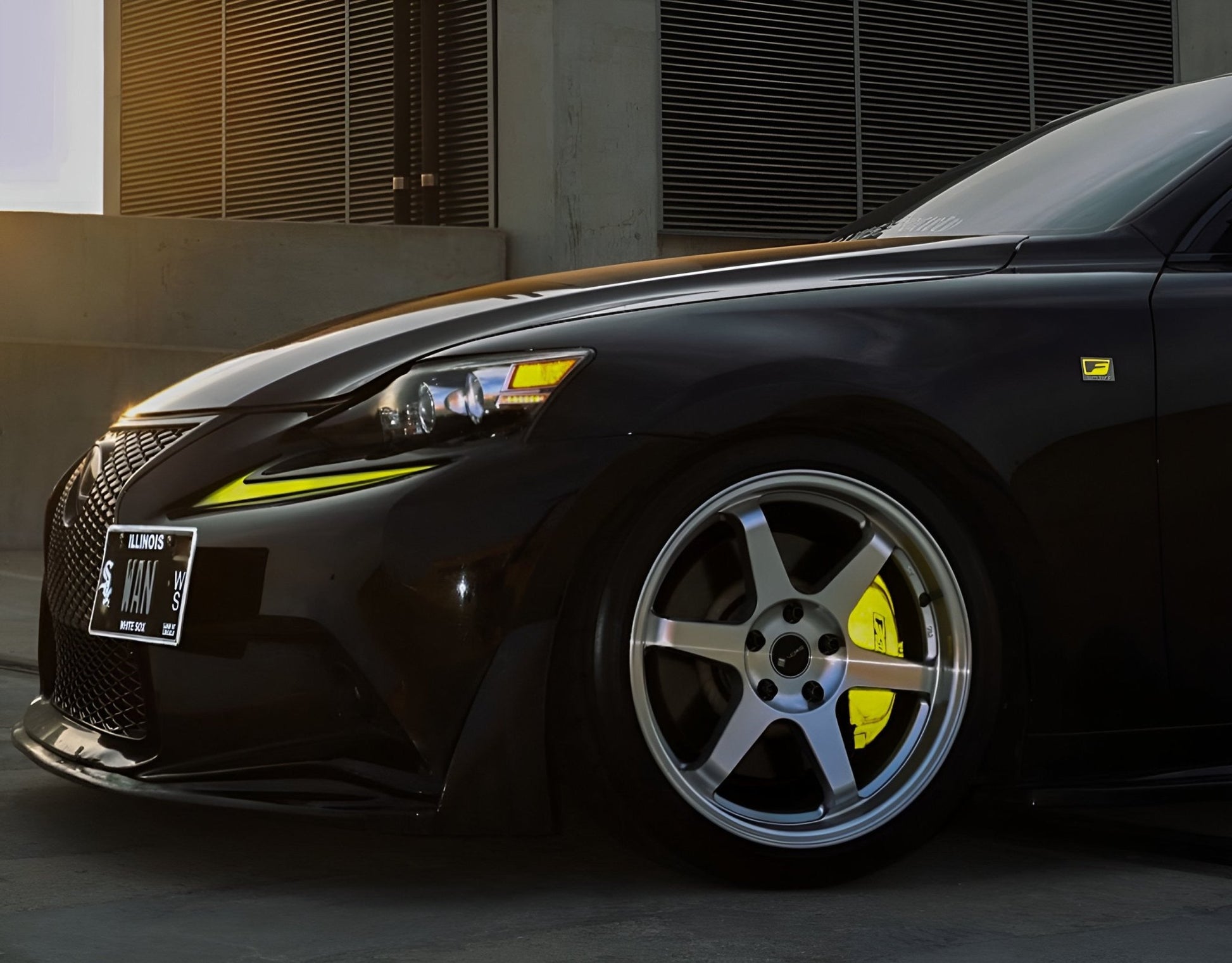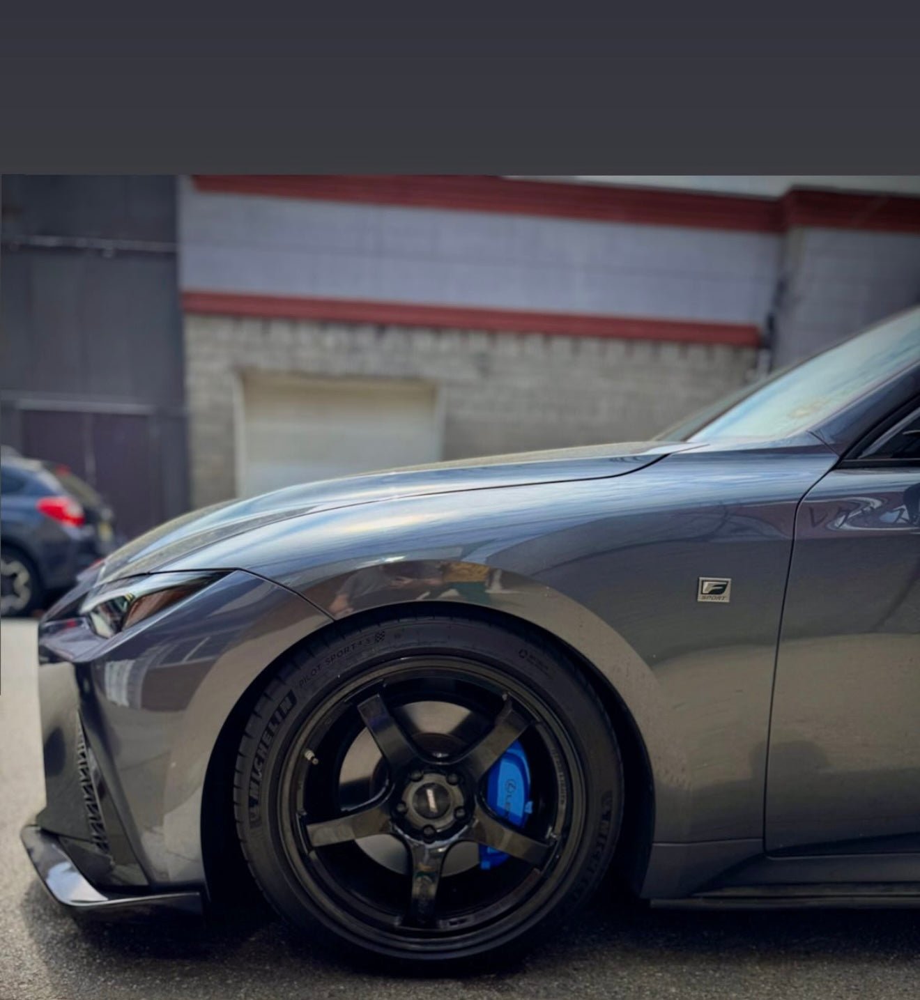 - Two gloss black F Sport / Lexus decals for the front calipers (rear calipers are too small for lettering)